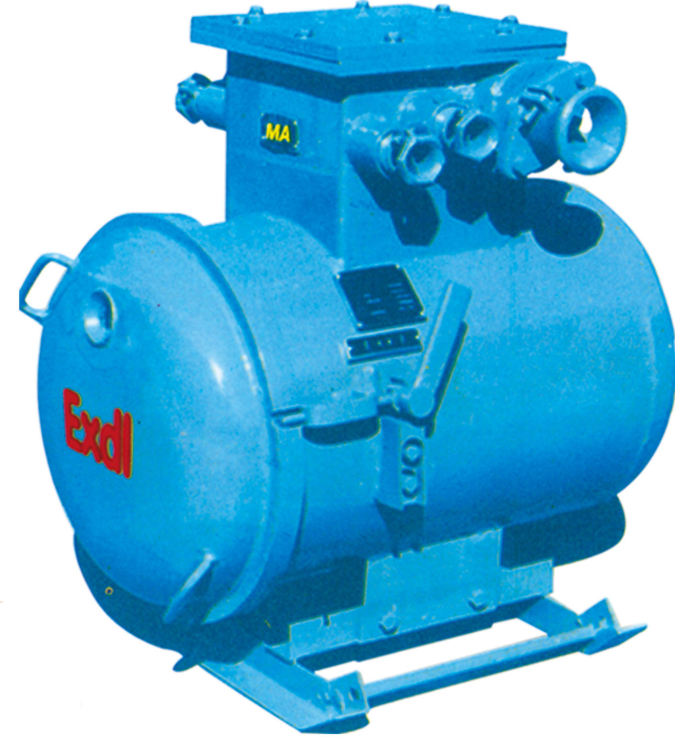 綜合裝置主要由隔爆外殼、干式變壓器、機(jī)芯三部分組成。隔爆外殼為圓筒型,具有凸出的底和蓋,殼蓋與殼身采用轉(zhuǎn)蓋止口結(jié)構(gòu), 開啟方便。外殼上部有一接線箱作為引進(jìn)和引出的電纜用.外殼右側(cè)裝有操作隔離開關(guān)的手柄和檢查短路、漏電保護(hù)的試驗(yàn)按鈕。并有可靠的機(jī)械聯(lián)鎖裝置,保證當(dāng)隔離開關(guān)閉合時(shí),殼蓋打不開;殼蓋打開時(shí),隔離開關(guān)不能閉合。殼蓋上方有一透明鏡,可以從外面觀察狀態(tài)指示燈。機(jī)芯主要由控制變壓器、交流接觸器、直流繼電器以及電子插件等組成。主變壓器與機(jī)芯的聯(lián)結(jié)采用端子板,檢修時(shí)機(jī)芯可獨(dú)立拿出。